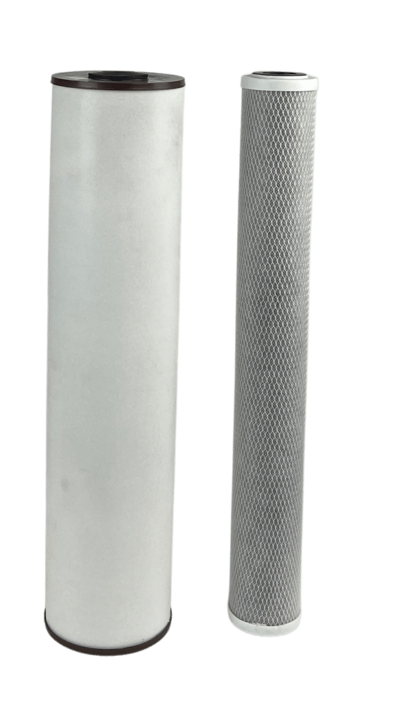 Filterset zuivert grondwater van IJzer en Mangaan. Verbeterd kleur, geur en smaak. Zeer geschikt voor huishoudelijk en gietwater toepassingen. Zie de kenmerken voor gebruiksvoorwaarden. Makkelijk te plaatsen eenvoudig filterpatronen wisselen.